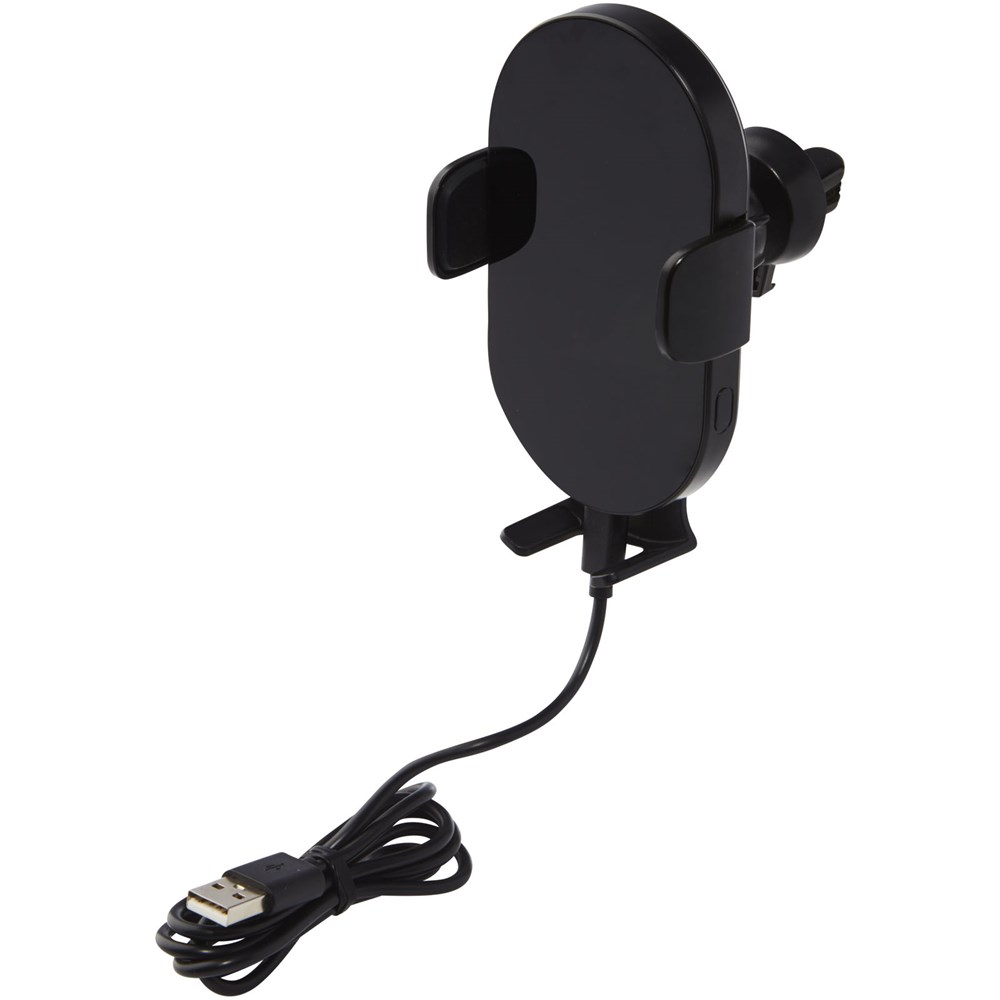 15 W universelle Autotelefonhalterung und Ladegerät. Mit seinem FOD-Sensor (Foreign Object Detection) lässt sich dieses Ladegerät problemlos mit einer Hand bedienen. Legen Sie das Gerät einfach auf das Ladegerät und es wird automatisch befestigt. Ideal für die Satellitennavigation und zum Aufladen des Telefons unterwegs. Mit 360 Grad drehbarem Clip kann das Telefon senkrecht oder waagerecht platziert werden. Kompatibel mit allen Qi Geräten (iPhone 8 oder höher und Android Geräte, die kabelloses Laden unterstützen) und unterstützt auch schnelles Laden. Eingang 12 V/1,67 A. Wireless Output: 15 W (max.). Wird mit einem 100 cm TPE Typ-C Kabel und Bedienungsanleitung geliefert. Geliefert in einer hochwertigen Kraftpapierbox mit buntem Aufkleber.