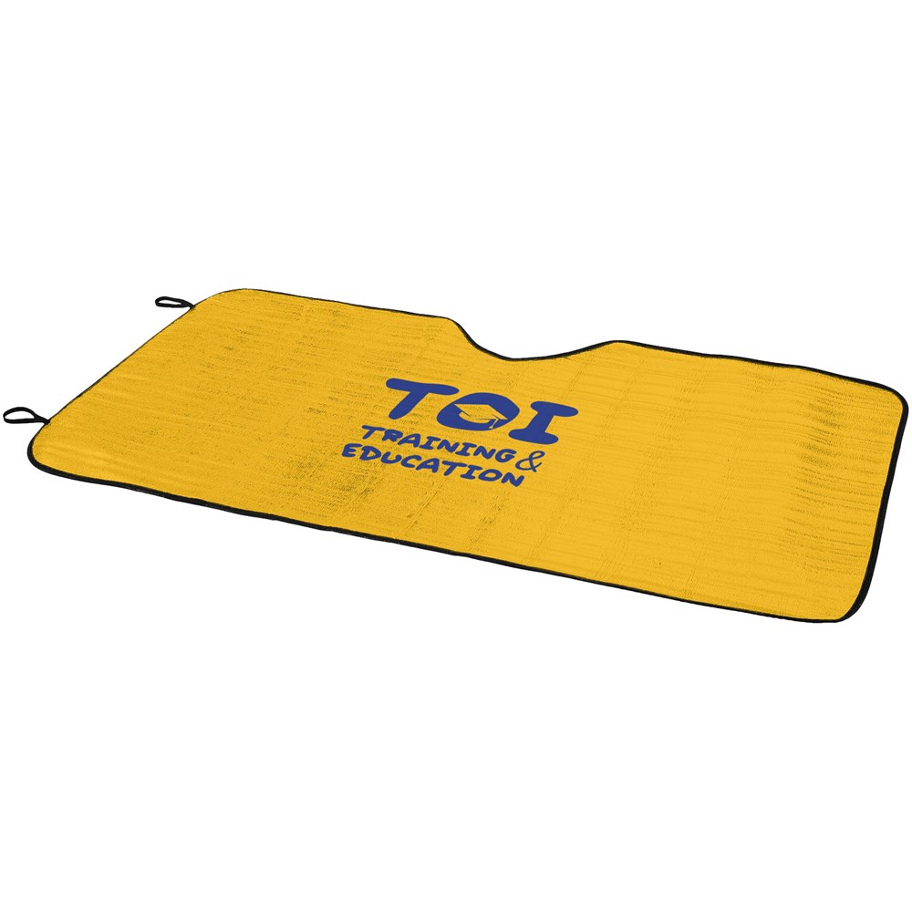 Sonnenschutz, der ganz einfach innen an der Windschutzscheibe des Autos angebracht werden kann.