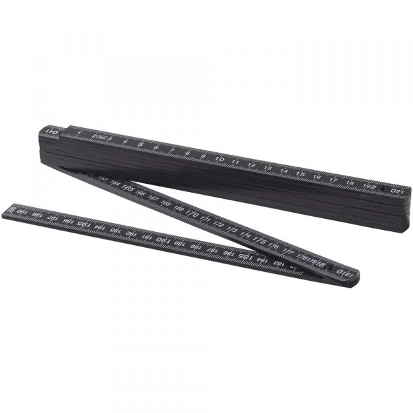 Doppelseitiger Zollstock mit 200 cm auf einer Seite und 79 Zoll auf der anderen. In mehrere zusammenklappbare Teile aufgeteilt.