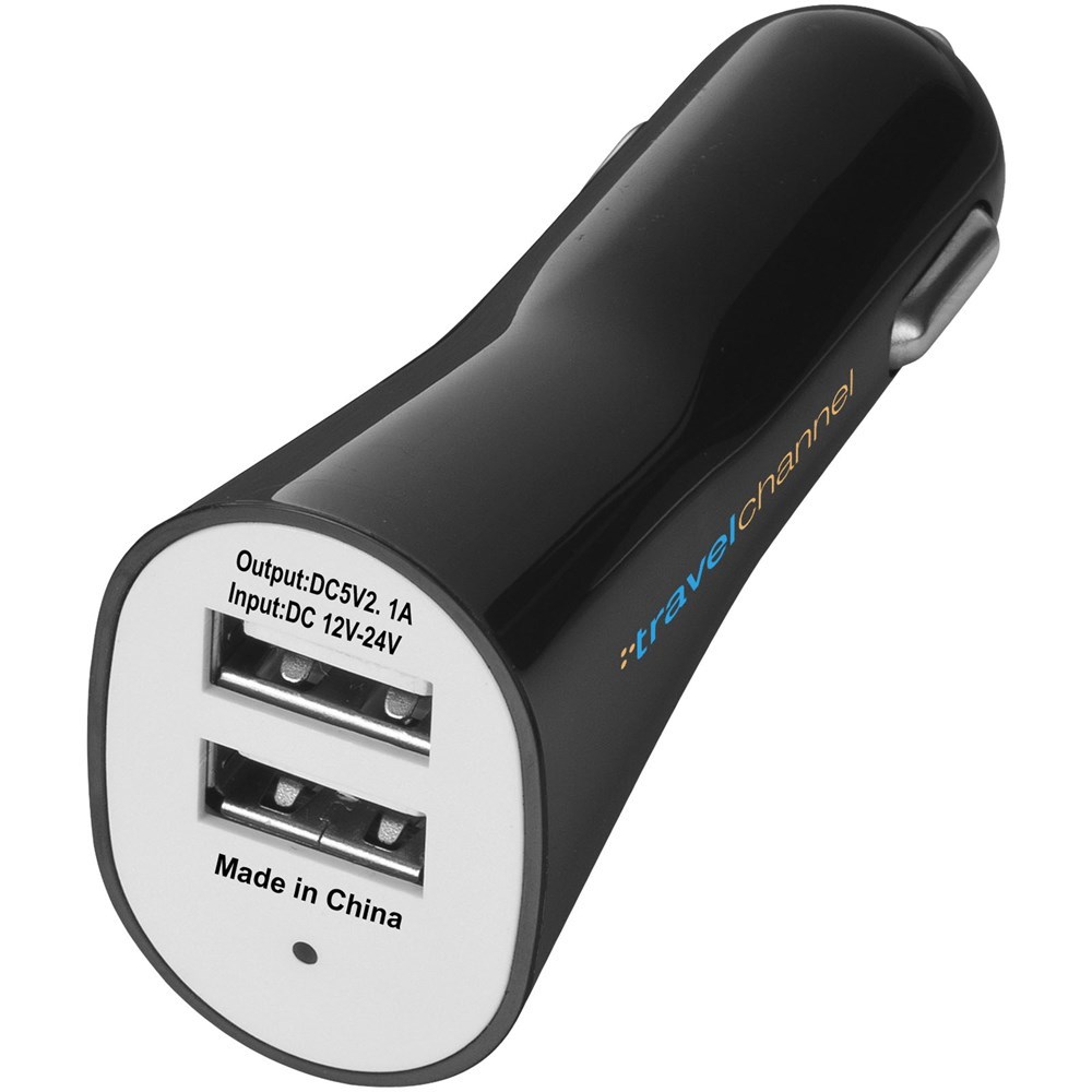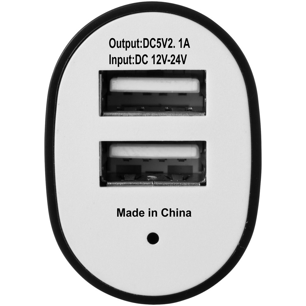 Doppelstecker-Adapter. Kann zum Aufladen persönlicher Geräte an eine Autosteckdose angeschlossen werden. USB-Ausgang: 5 Volt/2,0 A. Eingang: 12 V - 24 V. Geeignet für Autos und LKW.