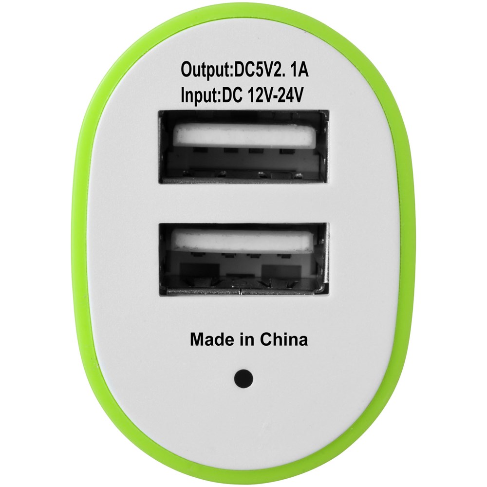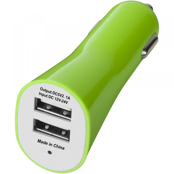 Doppelstecker-Adapter. Kann zum Aufladen persönlicher Geräte an eine Autosteckdose angeschlossen werden. USB-Ausgang: 5 Volt/2,0 A. Eingang: 12 V - 24 V. Geeignet für Autos und LKW.