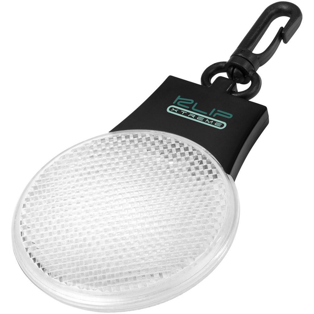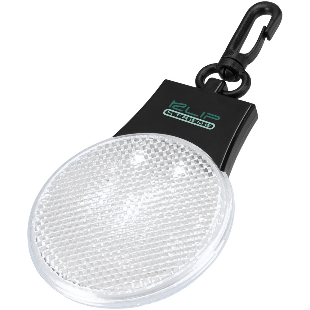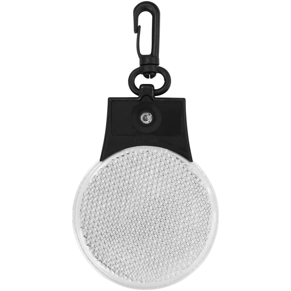 Drei Lichteinstellungen (ein, blinkend und links und rechts blinkend).  Drücken Sie den Ein/Aus-Schalter und den Funktionsschalter auf der Rückseite.  Aufhänge-Clip aus Kunststoff. Inkl. Batterien.