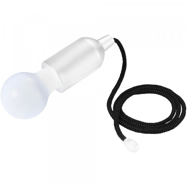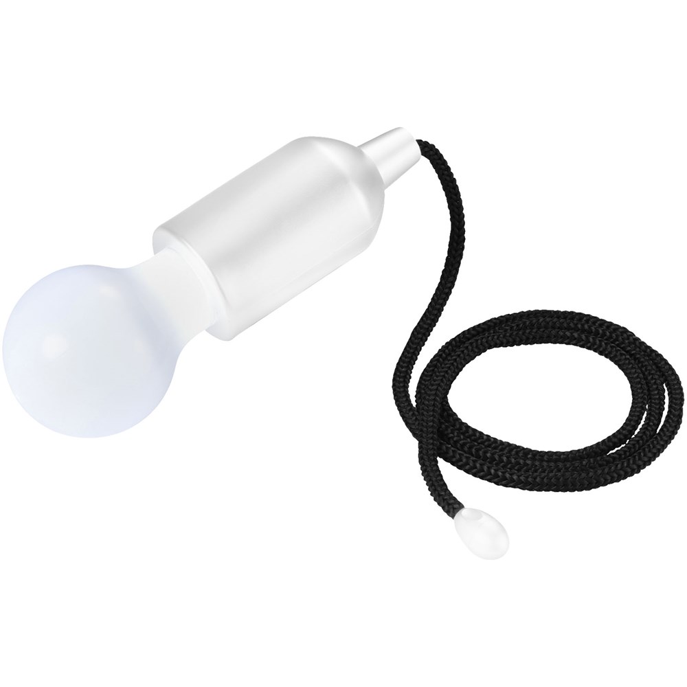 Lampe in Form einer Glühbirne mit weißem LED Licht und Zugschalter. Praktische Lampe, die für Licht sorgt, wann und wo Sie es möchten, z. B. in Ihrer Garage, im Schrank, im Freien oder auf dem Campingplatz. Inkl. 3 x AAA Batterien.