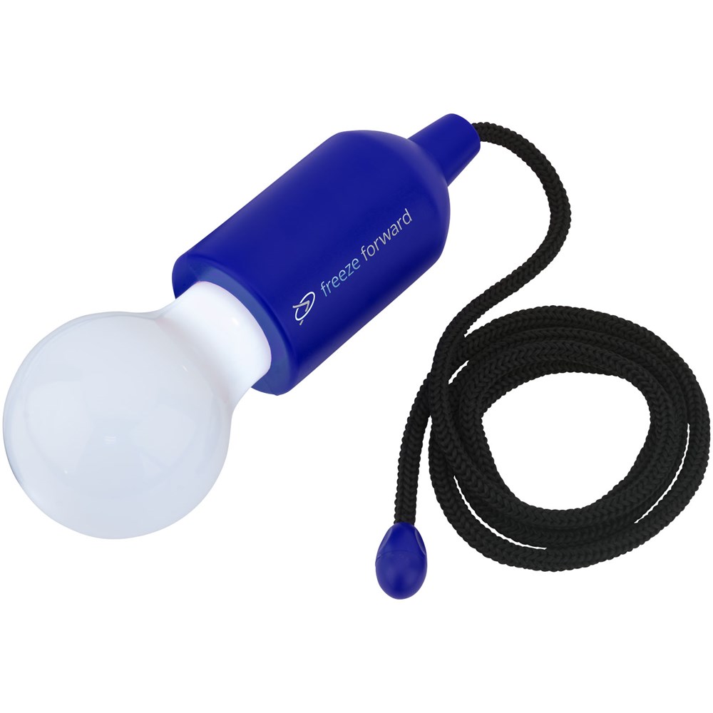 Lampe in Form einer Glühbirne mit weißem LED Licht und Zugschalter. Praktische Lampe, die für Licht sorgt, wann und wo Sie es möchten, z. B. in Ihrer Garage, im Schrank, im Freien oder auf dem Campingplatz. Inkl. 3 x AAA Batterien.