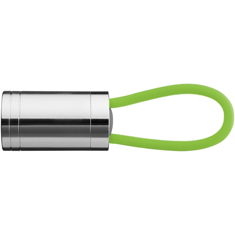 Die Taschenlampe mit den 6 weißen LEDs kommt mit einem farblich passenden, im Dunklen leuchtenden Silikonband und mit einer An-/Aus-Taste auf der Rückseite. Mit Batterien.