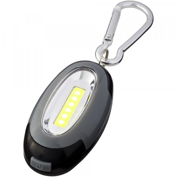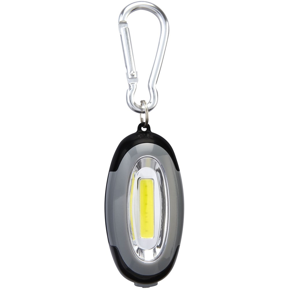 Ultra helles COB Licht mit Ein/Aus Schalter für dauerhaftes und blinkendes Licht. Mit Magnet auf der Rückseite, inkl. Batterien und farblich passendem Karabiner (nicht zum Klettern geeignet).