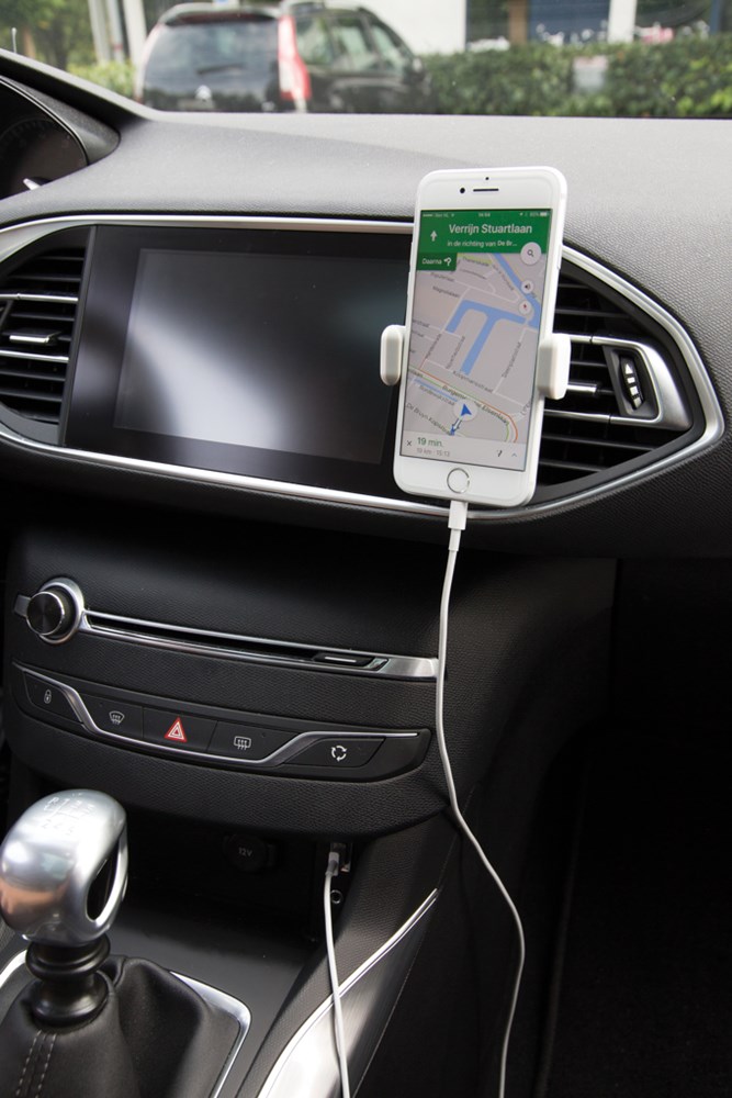 360 Grad universal einsetzbarer und flexibler Telefonhalter für das Auto. Aus ABS Material und Silikon - mit Edelstahl Mechanismus, um den Halt zu gewährleisten.