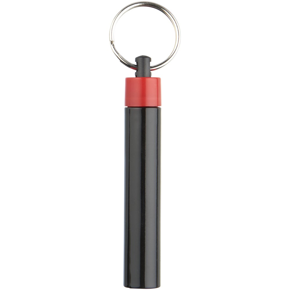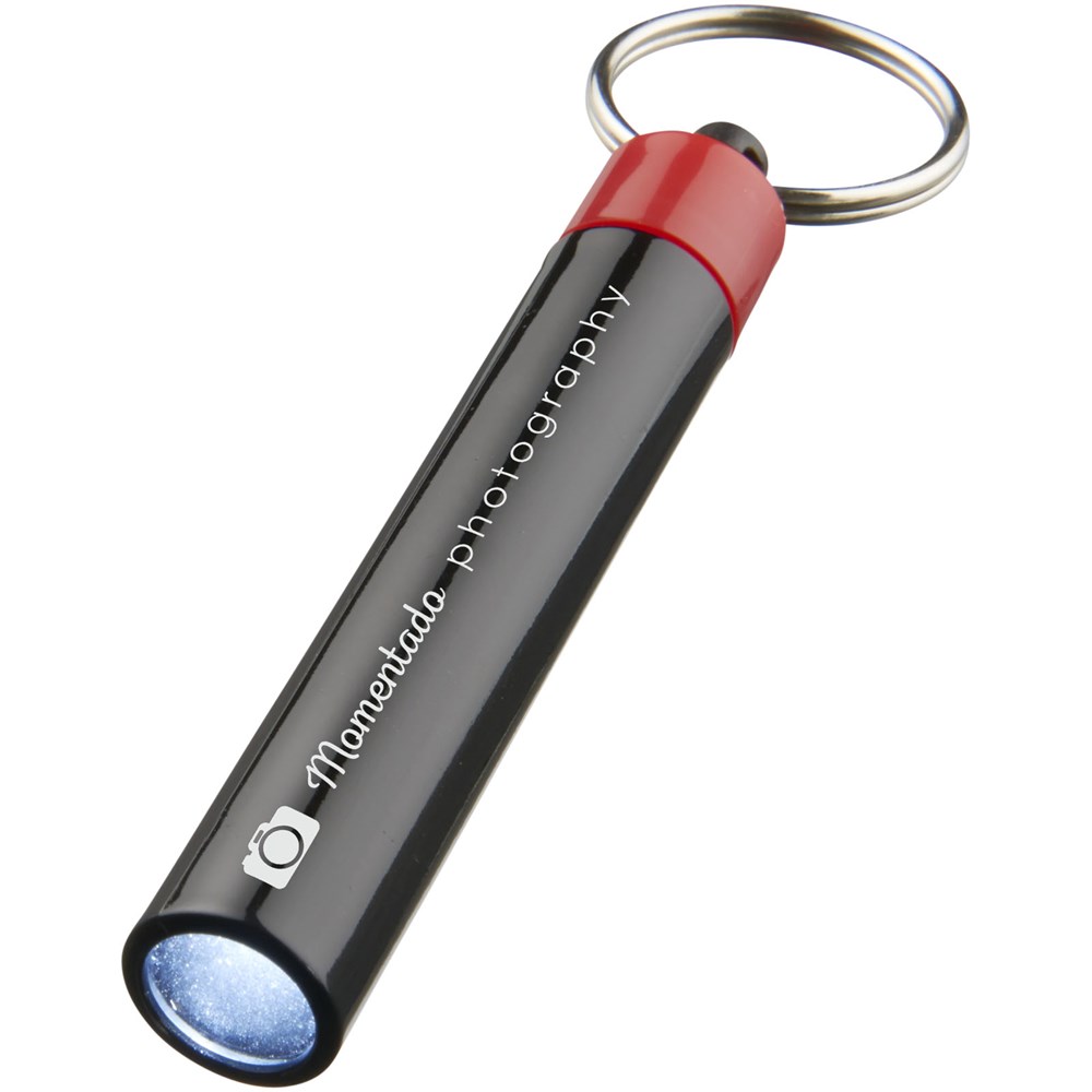 Retro Premium LED-Schlüssellicht. UV beschichtetes, einzelnes weißes LED Licht, gesteuert über einen Drucktastenschalter. Metall Schlüsselring. Inkl. Batterien. ABS Kunststoff.