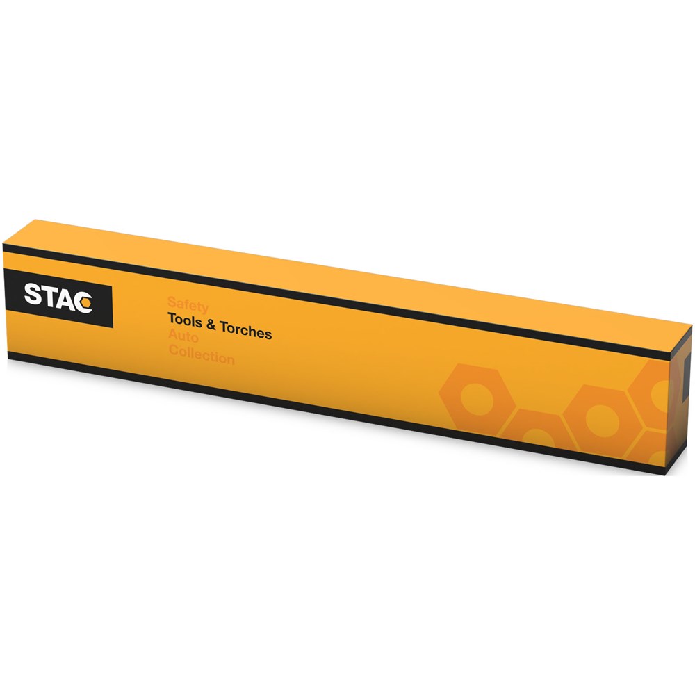 Schlanke Magnettaschenlampe mit drei Modi. Der erste Modus ist eine Taschenlampe mit 4 LEDs, der zweite Modus ist ein Licht mit 24 LEDs und der dritte Modus ist beides gleichzeitig. Magnetische Rückseite für das problemlose Aufbewahren und die Anbringung an Metallflächen bei Gebrauch. Ein/Aus-Schalter. Nylontrageschlaufe. Verpackt in einem STAC Geschenkkarton. Inkl. Batterien. Exklusives Design.