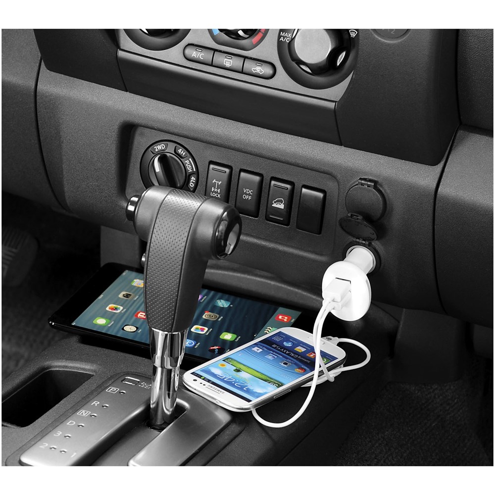 Dieser Adapter hat zwei Anschlüsse und einen LED Ring, dessen weißes Licht leuchtet, wenn die Zubehörstromsteckdose für das Aufladen persönlicher Geräte verwendet wird. Kompatibel mit Smartphones und persönlichen Geräten, die über ein USB-Kabel für das Aufladen verfügen (einschl. iPad® und Tablet-Geräte). Eingang: 12-24 Volt. Zwei USB-Anschlüsse (5 V/1 A & 2,1 A.), Max. Ausgang: 2,1 A. USB-Kabel nicht im Lieferumfang enthalten.