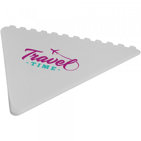 Dreieckiger Eiskratzer um die Windschutzscheibe von Eis und Schnee zu befreien mit einer großen Werbeanbringungssfläche. Jede der 3 Seiten kann zum Eiskratzen verwendet werden. Hergestellt in Großbritannien aus recyceltem Kunststoff.