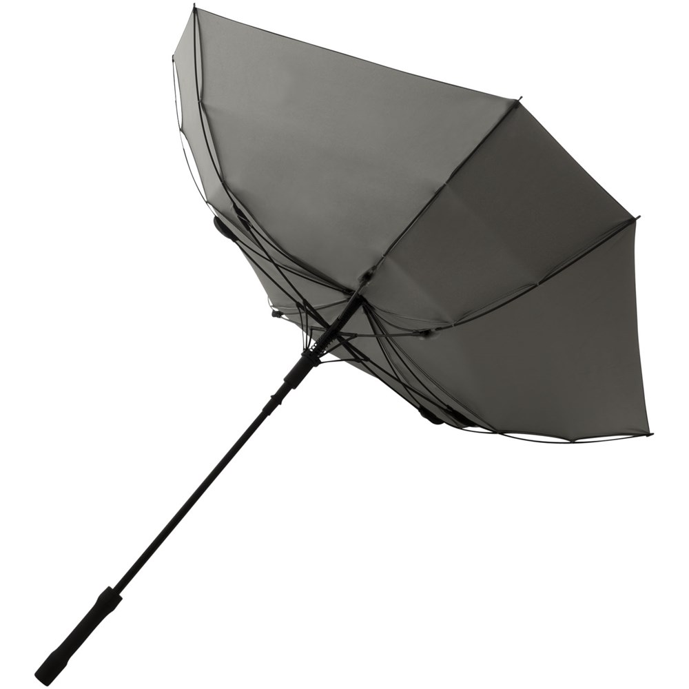 Quadratischer Automatikschirm im einzigartigen und exklusiven Design. Baldachin in Kontrastfarbe und schwarze Hülle. Speichen und Schaft aus Glasfaser und gummierter Griff.
