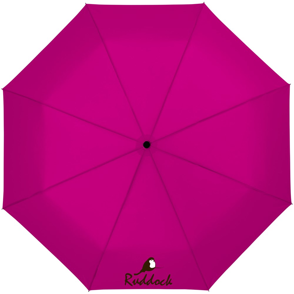 21" Schirm mit Metallrahmen, Glasfaserspeichen und gummibeschichtetem Kunststoffgriff. Schirm wird mit einer Hülle geliefert.