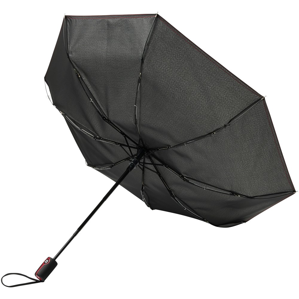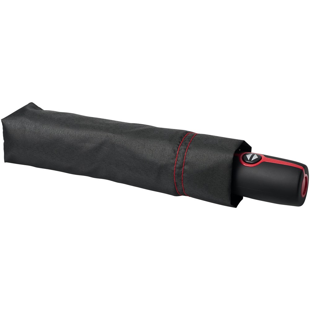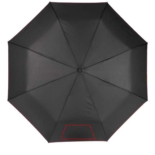 Vollautomatik Kompaktregenschirm mit einem Polyesterschirm aus Pongee-Polyester. Robuster Metallschaft, hochwertiger Rahmen mit Glasfaserrippen, der maximale Flexibilität bei windigem Wetter bietet. Wird mit einem Beutel geliefert und passt für den bequemen Transport problemlos in eine Handtasche oder einen Rucksack. Farbige Details sind auf dem Soft-Touch-Griff und den detaillierten Nähten von Schirm und Beutel erhältlich. Große Dekorationsfläche auf jedem Paneel sowie auf dem Griff.