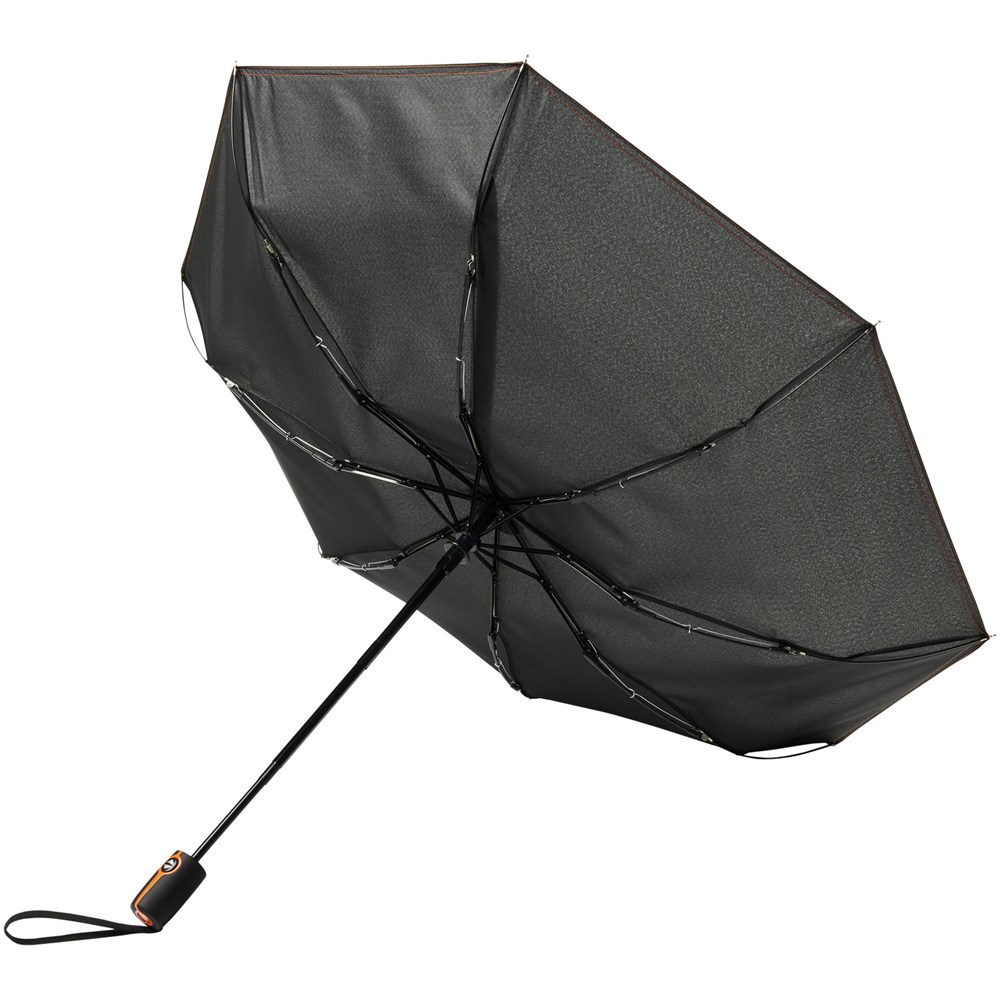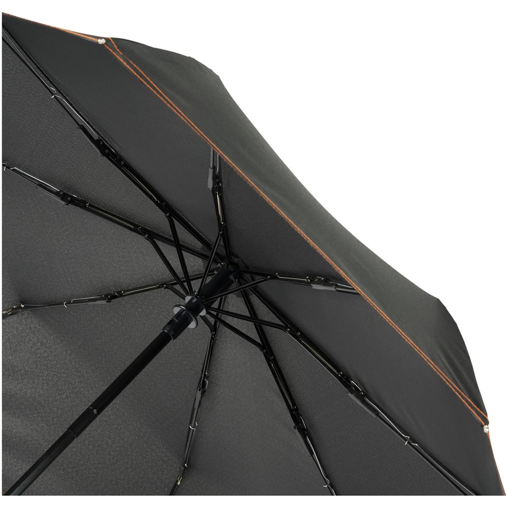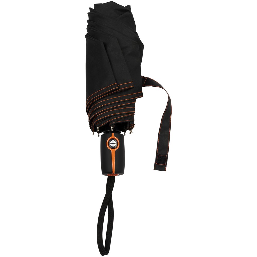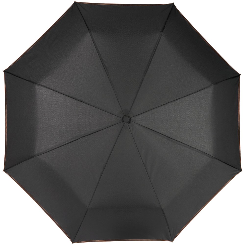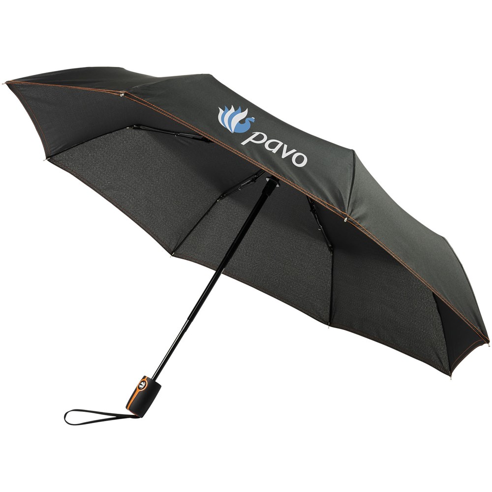 Vollautomatik Kompaktregenschirm mit einem Polyesterschirm aus Pongee-Polyester. Robuster Metallschaft, hochwertiger Rahmen mit Glasfaserrippen, der maximale Flexibilität bei windigem Wetter bietet. Wird mit einem Beutel geliefert und passt für den bequemen Transport problemlos in eine Handtasche oder einen Rucksack. Farbige Details sind auf dem Soft-Touch-Griff und den detaillierten Nähten von Schirm und Beutel erhältlich. Große Dekorationsfläche auf jedem Paneel sowie auf dem Griff.