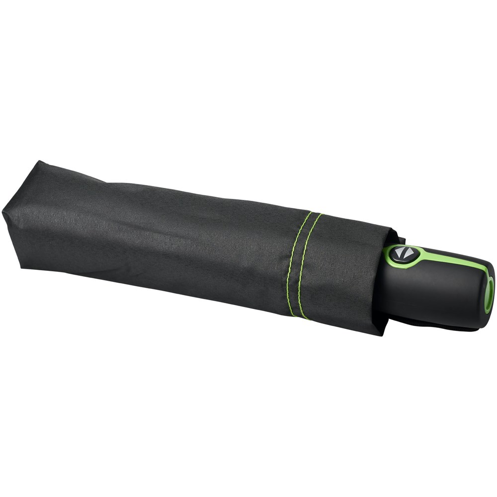 Vollautomatik Kompaktregenschirm mit einem Polyesterschirm aus Pongee-Polyester. Robuster Metallschaft, hochwertiger Rahmen mit Glasfaserrippen, der maximale Flexibilität bei windigem Wetter bietet. Wird mit einem Beutel geliefert und passt für den bequemen Transport problemlos in eine Handtasche oder einen Rucksack. Farbige Details sind auf dem Soft-Touch-Griff und den detaillierten Nähten von Schirm und Beutel erhältlich. Große Dekorationsfläche auf jedem Paneel sowie auf dem Griff.