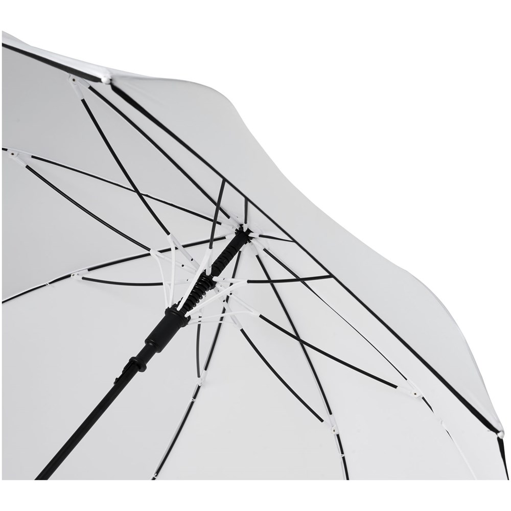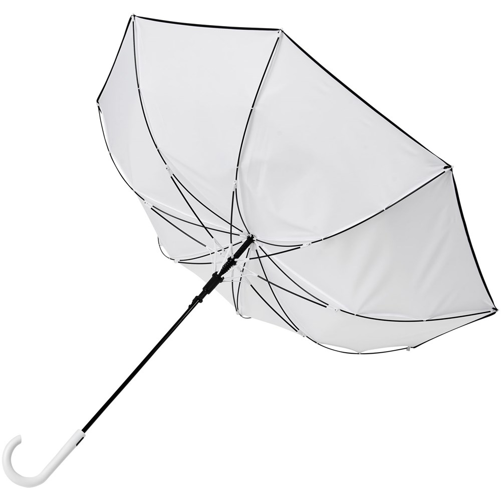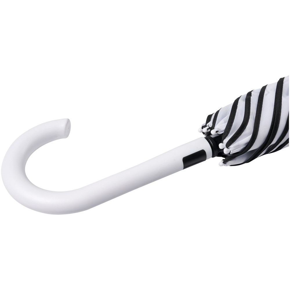 Automatikregenschirm mit einem Polyesterschirm aus Pongee in frischen Farben. Robuster Metallschaft und ein hochwertiger Vollglasfaserrahmen mit maximaler Flexibilität bei Wind. Der gebogene Griff hat einen integrierten Druckknopf. Farbige Details sind im Inneren des Glasfaserrahmens erhältlich und diese ziehen sich durch den Griff, die Spitzen und die obere Kappe. Große Dekorationsfläche auf jedem Paneel verfügbar.
