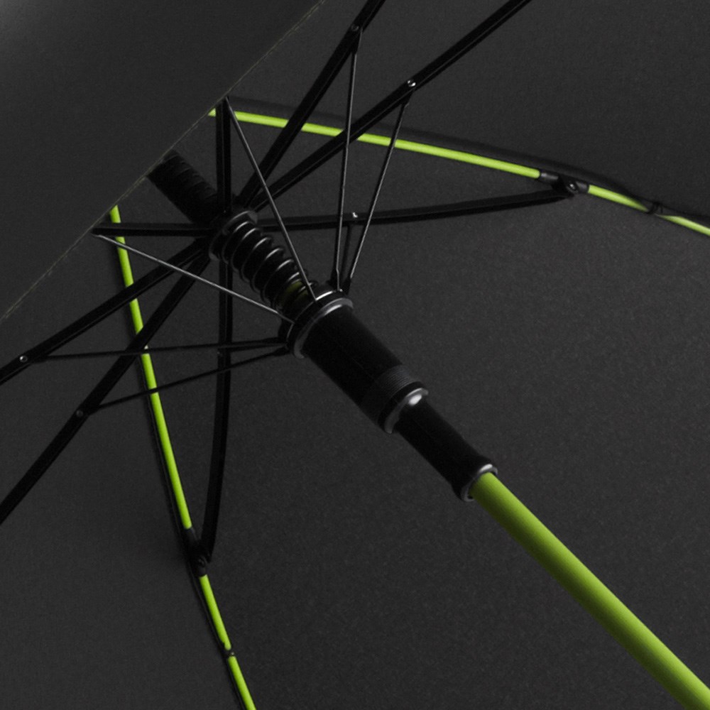Komfortable Automatik-Funktion zum schnellen Öffnen, Windproof-Features für höhere Gestell-Flexibilität und bessere Windsicherheit, flexible Fiberglasschienen, stabiler Stahlstock mit farbiger Kunststoffummantelung, STANDARD 100 by OEKO-TEX® zertifiziertes Polyester-Pongee Bezugsmaterial aus recycelten Kunststoffen, umweltfreundlich dank original waterSAVE Bezugsmaterial, dezente Verzierung des Bezugs durch farbige Nähte, exklusiver Softgriff mit doppelter Werbeanbringungsmöglichkeit, Auslösetaste mit Werbeanbringungsmöglichkeit. Auch als Taschenschirm (Art. 5644) erhältlich.