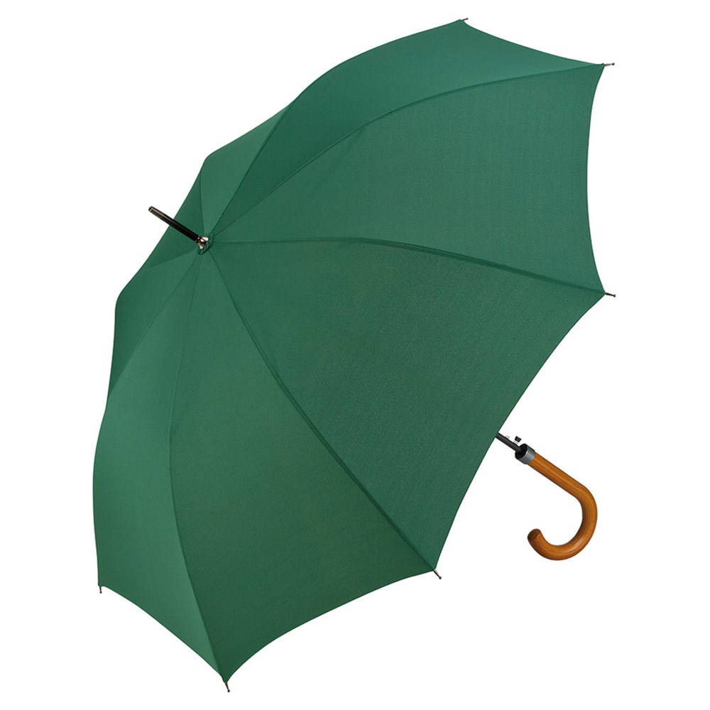 Preislich attraktiver Automatik-Stockschirm mit geflammtem Rundhakengriff aus Echtholz.