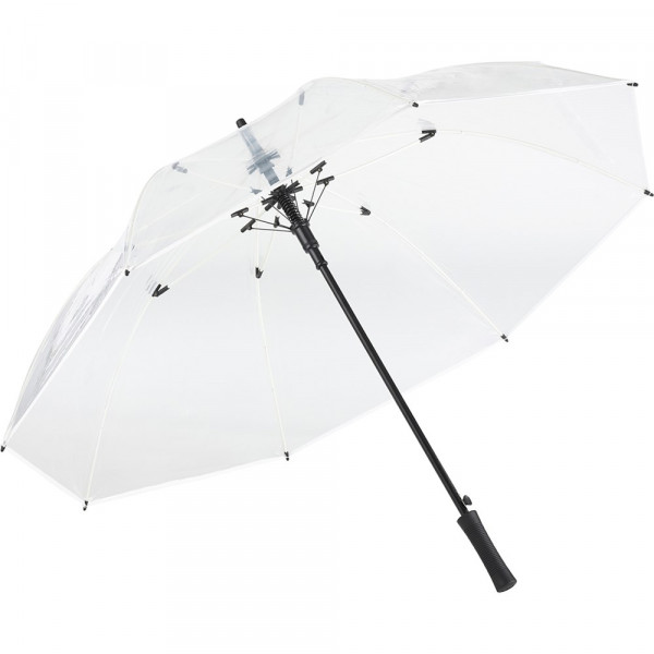 Ansprechender Automatik-Gästeschirm mit transparentem Bezug und farbigen Details. Komfortable... mehr