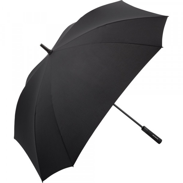 Komfortable Automatik-Funktion zum schnellen Öffnen, hochwertiges Windproof-System für eine maximale Gestell-Flexibilität bei stärkeren Windböen, flexible Fiberglasschienen, farbige Ummantelung des Stahlstocks, gerader Soft-Touch-Griff mit integrierter Auslösetaste und doppelter Werbeanbringungsmöglichkeit, gastfreundlicher großer Durchmesser