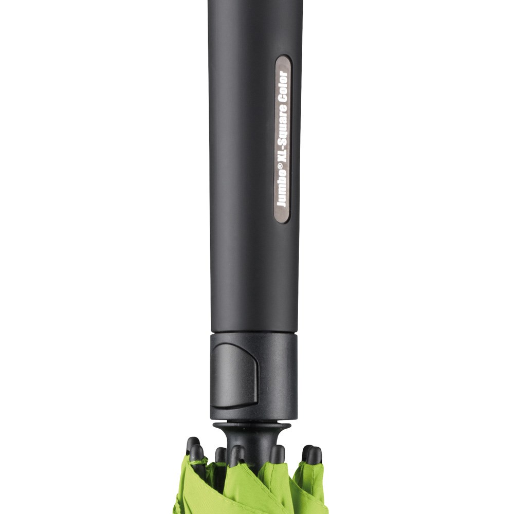 Quadratischer Gästeschirm für zwei Personen. Komfortable Automatik-Funktion zum schnellen Öffnen, hochwertiges Windproof-System für eine maximale Gestell-Flexibilität bei stärkeren Windböen, flexible Fiberglasschienen, farbige Ummantelung des Stahlstocks, gerader Soft-Touch-Griff mit integrierter Auslösetaste und doppelter Werbeanbringungsmöglichkeit, gastfreundlicher großer Durchmesser Produktinformation: Schirm-Breite: 113 cm Schirm-Tiefe: 113 cm Geschlossene Länge: 101 cm Keilanzahl: 8 Gewicht: 690 g Stock-Durchmesser: 14 mm Features: AC (automatisch öffnend) Windproof-System Fibertec Durchmesser quadratisch EXCLUSIVE FARE® Zertifizierung: Labtech-ID 122799