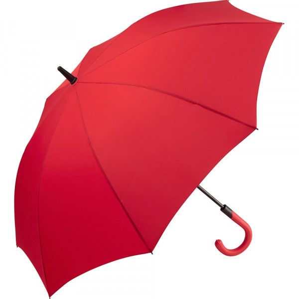 Eleganter Stockschirm in mittlerer Größe mit farbigem Griff und Details aus Kunstleder.