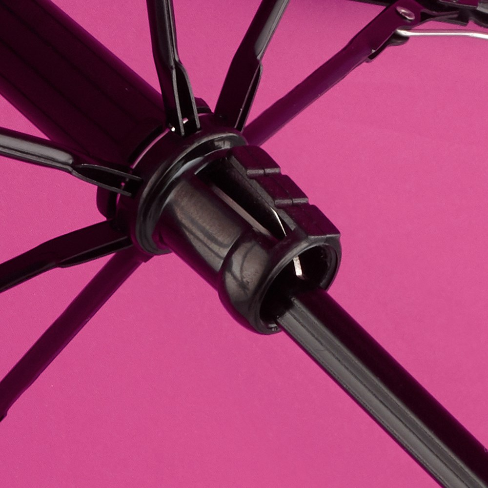 Einfache Handhabung durch Sicherheitsschieber, hochwertiges Windproof-System für eine maximale Gestell-Flexibilität bei stärkeren Windböen, schwarzer Aluminiumstock, STANDARD 100 by OEKO-TEX® zertifiziertes Polyester-Pongee Bezugsmaterial, extra leichter Bezug, matt-schwarzer Kunststoffgriff mit Werbeanbringungsmöglichkeit, handtaschentauglich durch ultraleichtes Gewicht und kompakte Größe
