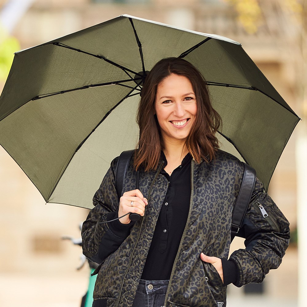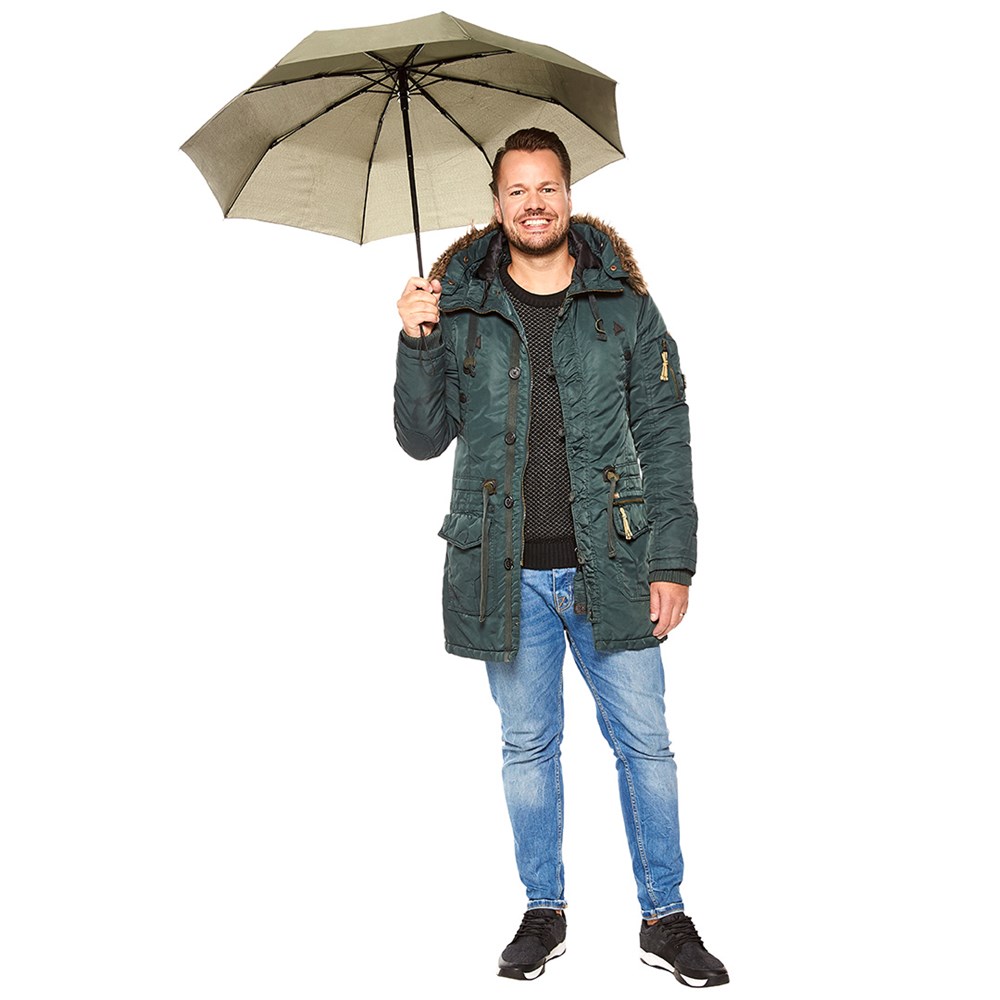 Preislich attraktiver Doppelautomatik-Taschenschirm mit Windproof-System. Komfortable Doppelautomatik-Funktion zum schnellen Öffnen und Schließen des Schirms, hochwertiges Windproof-System für eine maximale Gestell-Flexibilität bei stärkeren Windböen, handsympathischer Soft-Feel-Griff mit integrierter Auslösetaste, elastischer Tragekordel und Werbeanbringungsmöglichkeit Produktinformation: Schirm-Durchmesser: 98 cm Geschlossene Länge: 30 cm Keilanzahl: 8 Gewicht: 370 g Gestell: 3 -teilig Features: AOC (automatisch öffnend/schließend) Windproof-System EXCLUSIVE FARE®