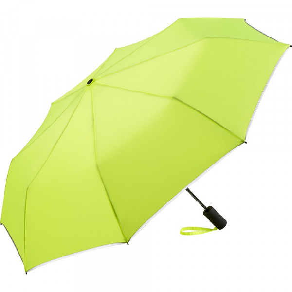 Stabiler Automatik-Taschenschirm mit modisch reflektierender Paspelierung.