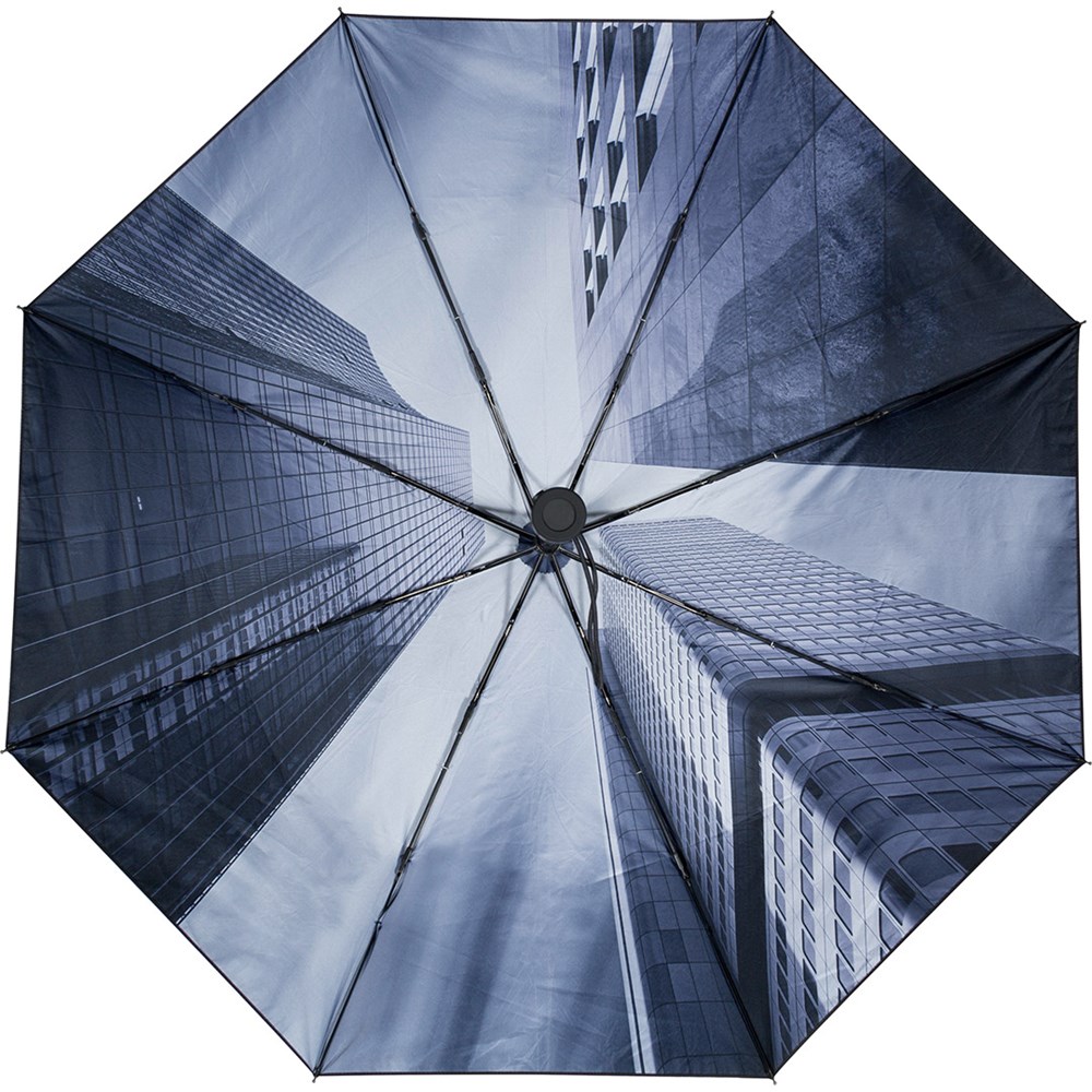 Neutraler Automatik-Taschenschirm mit farbigem Motiv-Innendruck.