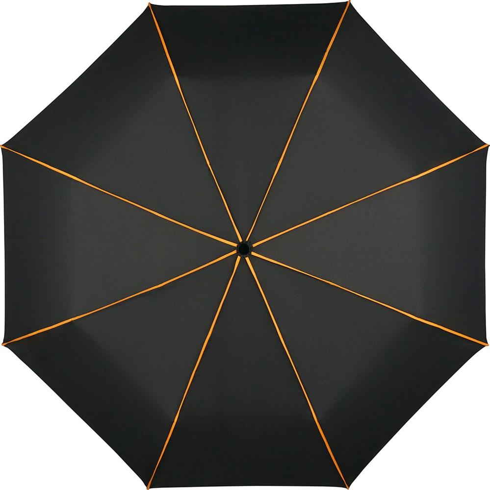 Schicker Doppelautomatik-Taschenschirm in Übergröße mit farbigen Highlights. Komfortable Doppelautomatik-Funktion zum schnellen Öffnen und Schließen, hochwertiges Windproof-System für eine maximale Gestell-Flexibilität bei stärkeren Windböen, auffällige Verzierung des Bezugs durch farbige Keilnahtpaspeln, matt / glänzend abgesetzter Soft-Touch-Griff mit integrierter Auslösetaste und Werbeanbringungsmöglichkeit, farbige Griffschlaufe, Futteral mit Druckknopf und farbiger Paspelierung. Auch als Midsize-Schirm (Art. 4399) erhältlich. Produktinformation: Schirm-Durchmesser: 104 cm Geschlossene Länge: 31,80 cm Keilanzahl: 8 Gewicht: 394 g Gestell: 3 -teilig Features: AOC (automatisch öffnend/schließend) Windproof-System Fibertec EXCLUSIVE FARE® Zertifizierung: Labtech-ID 113375