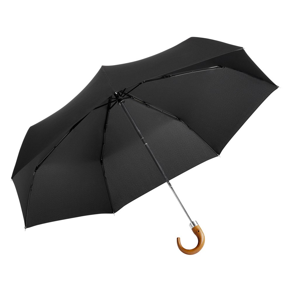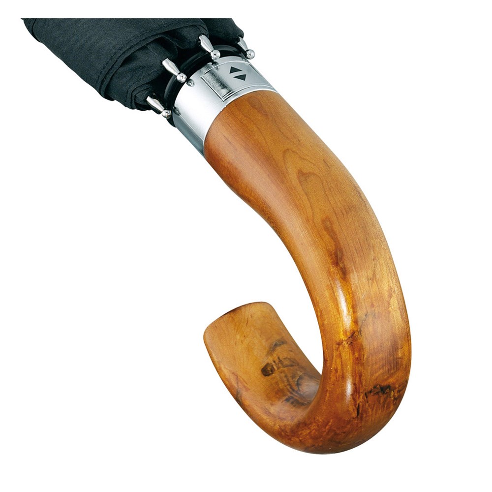 Klassischer Doppelautomatik-Taschenschirm in mittlerer Größe mit Echtholzgriff. Komfortable Doppelautomatik-Funktion zum schnellen Öffnen und Schließen, hochwertiges Windproof-System mit äußerst flexibler Fibertec®-Schienenkonstruktion für eine höhere Belastbarkeit bei starken Windböen, verchromter Stahlstock, wasser- und schmutzabweisende Bezugseigenschaften durch original Teflon™ Faserschutz, exklusiver Holz-Rundhakengriff mit verchromter Auslösetaste, verchromtes Top Produktinformation: Schirm-Durchmesser: 110 cm Geschlossene Länge: 36 cm Keilanzahl: 7 Gewicht: 444 g Gestell: 3 -teilig Features: AOC (automatisch öffnend/schließend) Windproof-System Fibertec Durchmesser XL EXCLUSIVE FARE® Teflon™ Faserschutz Zertifizierung: TÜV-ID 1111228112