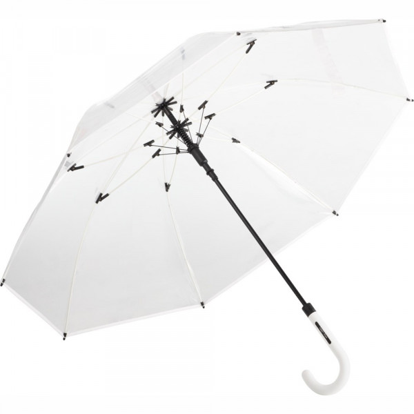 Ansprechender Automatik-Stockschirm mit transparentem Bezug und farbigen Details. Komfortable... mehr