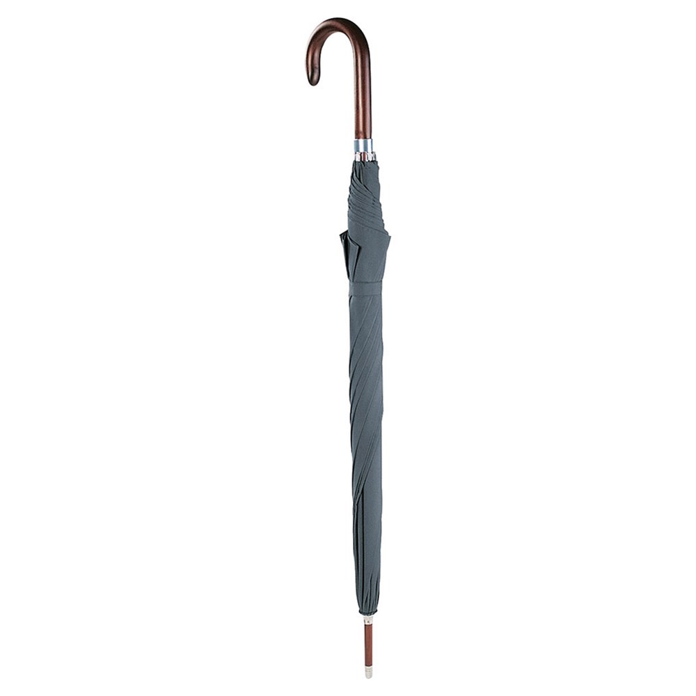 Eleganter Automatik-Gästeschirm für zwei Personen mit Echtholzstock und Echtholzgriff. Komfortable Automatik-Funktion zum schnellen Öffnen, Windproof-Features für höhere Gestell-Flexibilität und bessere Windsicherheit, flexible Fiberglasschienen, Stock aus massivem Echtholz in Dunkelbraun, wasser- und schmutzabweisende Bezugseigenschaften durch original Teflon™ Faserschutz, formschöner Rundhakengriff aus Echtholz, gastfreundlicher großer Durchmesser Produktinformation: Schirm-Durchmesser: 120 cm Geschlossene Länge: 100 cm Keilanzahl: 8 Gewicht: 550 g Stock-Durchmesser: 14 mm Features: AC (automatisch öffnend) Windproof-Features Teflon™ Faserschutz