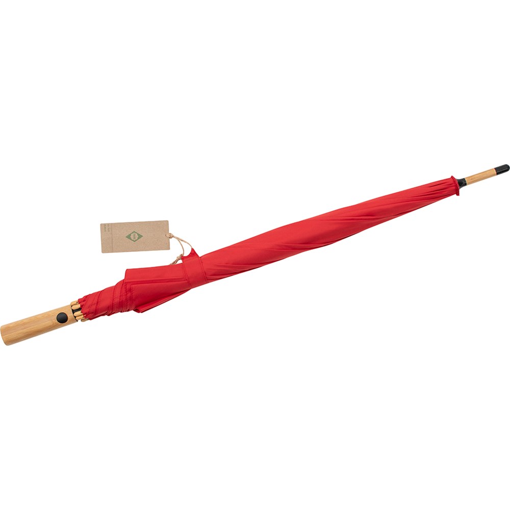 Nachhaltiger Stockschirm in mittlerer Größe mit Elementen aus Bambus und Bezug aus recycelten Kunststoffen. Komfortable Automatik-Funktion zum schnellen Öffnen, hochwertiges Windproof-System für eine maximale Gestell-Flexibilität bei stärkeren Windböen, flexible Fiberglasschienen, leichter Bambusstock, STANDARD 100 by OEKO-TEX® zertifiziertes Polyester-Pongee Bezugsmaterial aus recycelten Kunststoffen, Bambus-Spitzen, gerader Bambusgriff mit schwarzer Auslösetaste und Werbeanbringungsmöglichkeit. Auch als Taschenschirm (Art. 5429) erhältlich. Produktinformation: Schirm-Durchmesser: 112 cm Geschlossene Länge: 88 cm Keilanzahl: 8 Gewicht: 530 g Stock-Durchmesser: 14 mm Features: AC (automatisch öffnend) Windproof-System Fibertec Ökologisch sinnvoll EXCLUSIVE FARE® Zertifizierung: Labtech-ID 113379 PSI Sustainability Award 2019