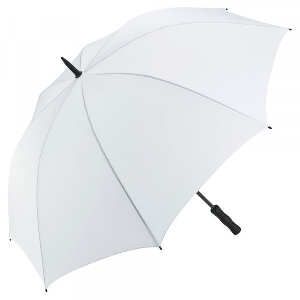 Einfache Handhabung durch Sicherheitsschieber, Windproof-Features für höhere Gestell-Flexibilität und bessere Windsicherheit, flexible Fiberglasschienen, stabiler Fiberglasstock, Schirmkonstruktion ohne Bestandteile aus Metall (MFP - Metal Free Product), wasser- und schmutzabweisende Bezugseigenschaften durch FARE®-PEL Gewebeschutz, exklusiver Soft-Touch-Griff in Golfball-Haptik mit Werbeanbringungsmöglichkeit, gastfreundlicher großer Durchmesser, ausgezeichnet mit dem PROMOfritz Award WERBEARTIKEL DES JAHRES 2011