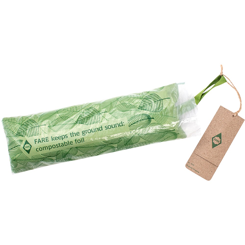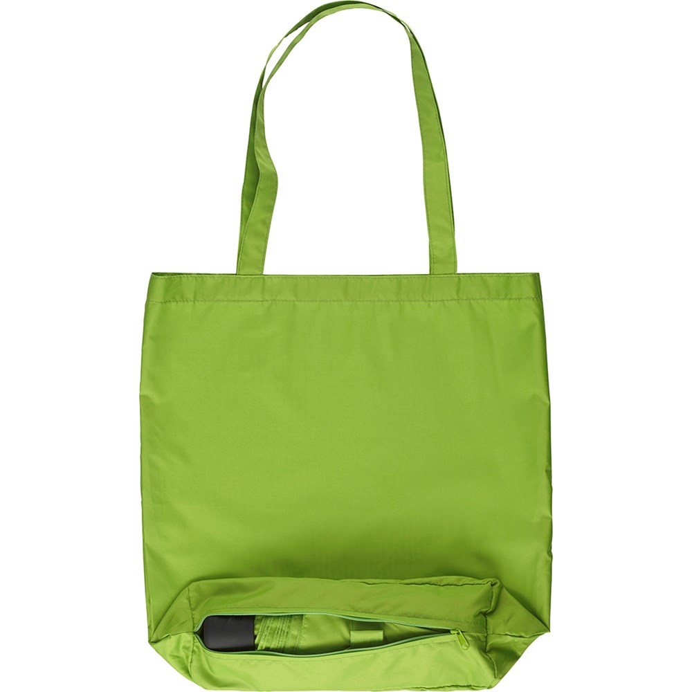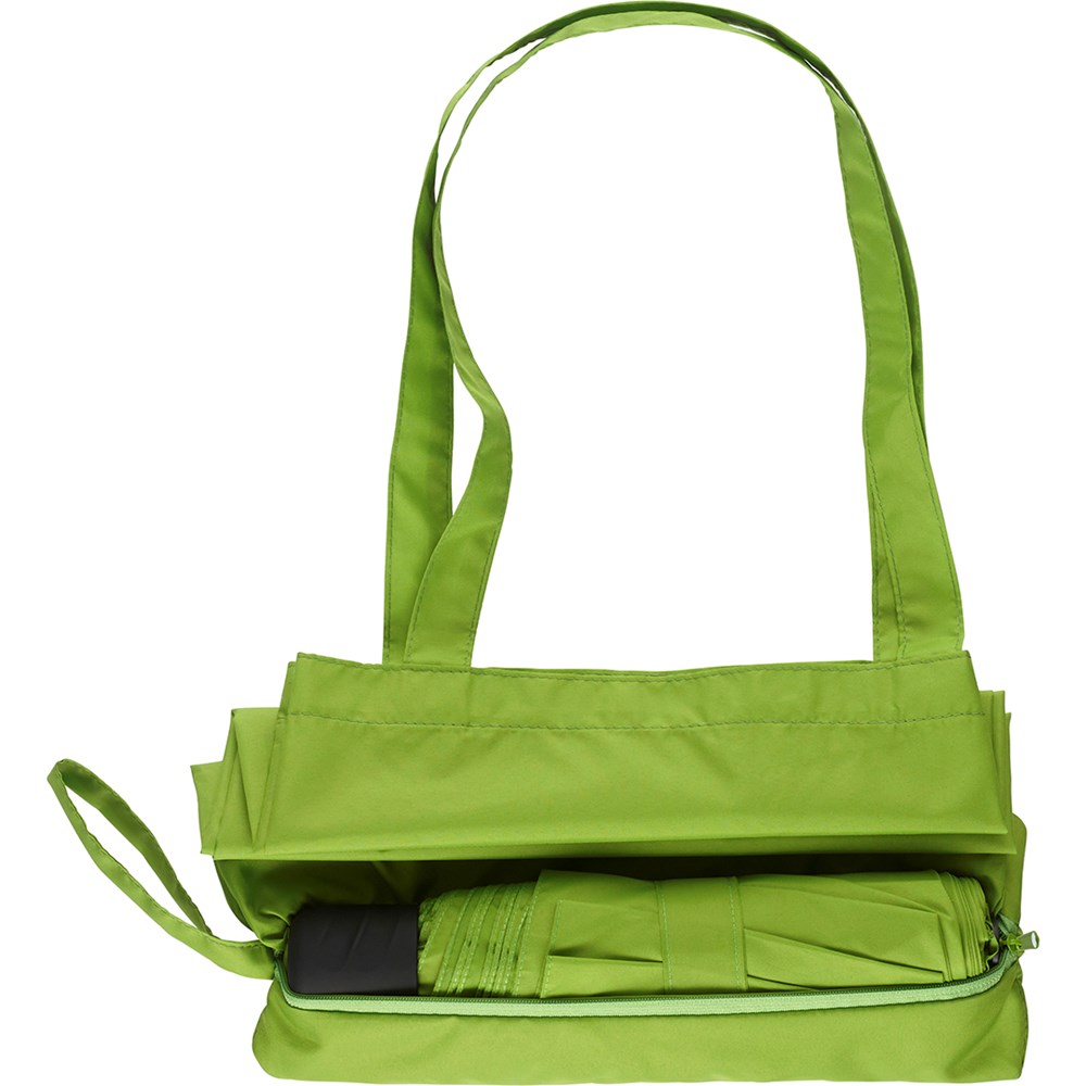 Nachhaltiger Handöffner-Taschenschirm mit Einkauftasche.
