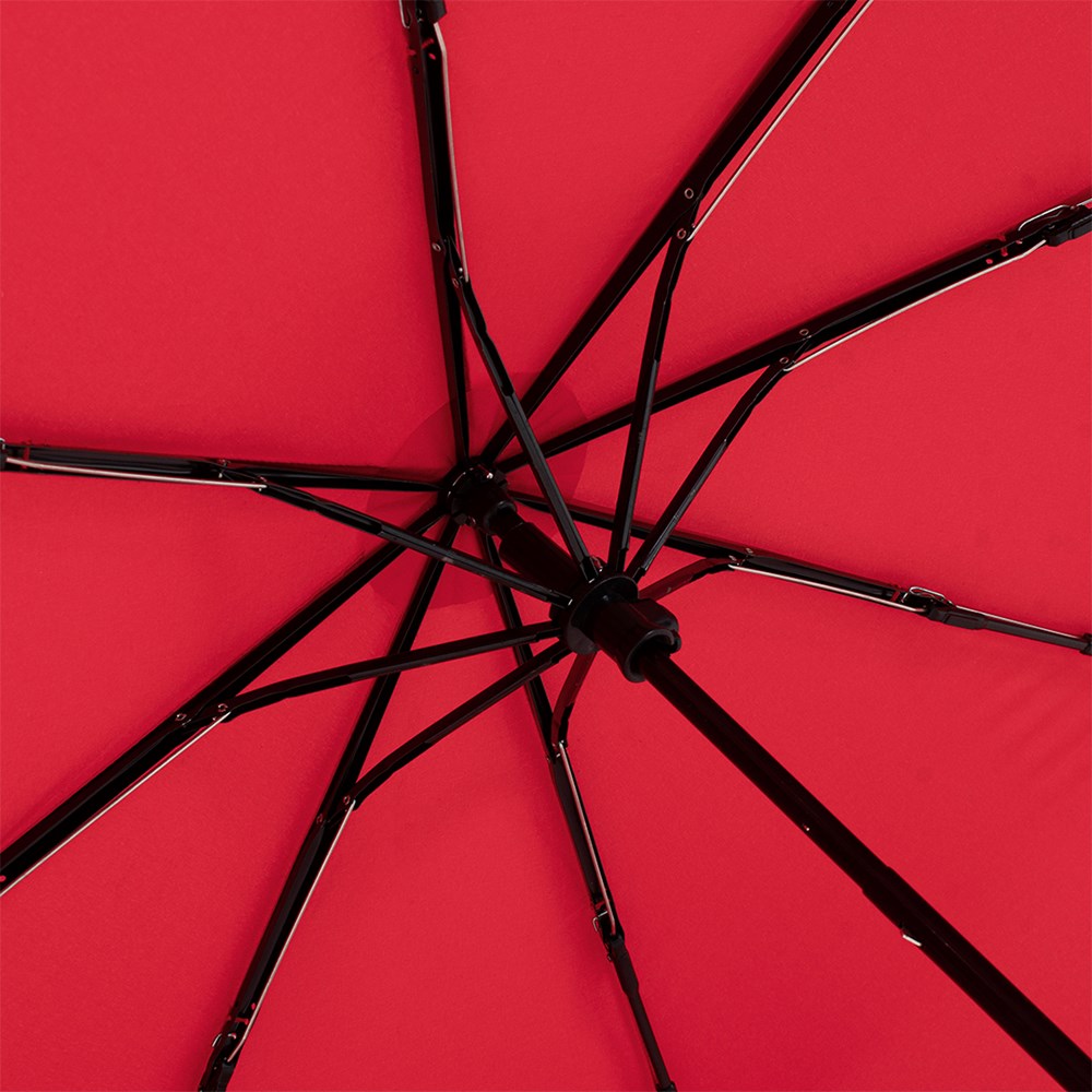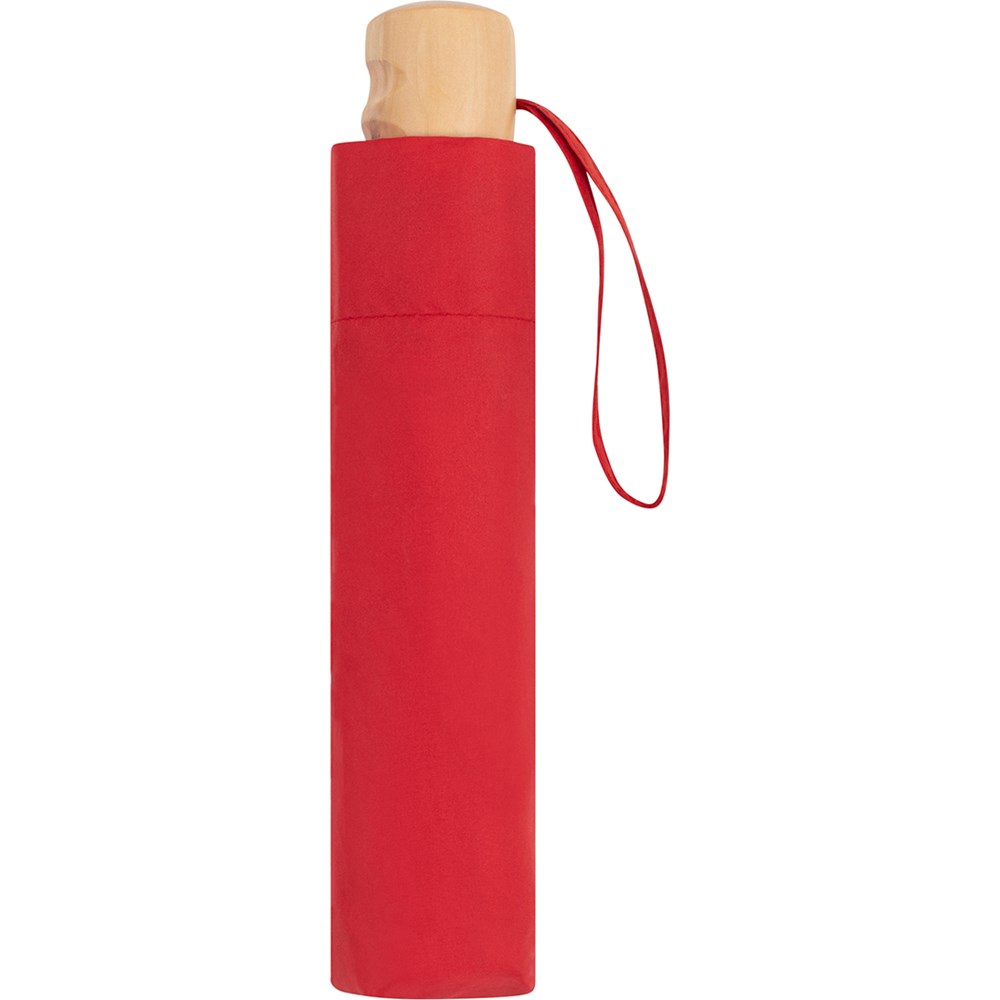 Einfache Handhabung durch Sicherheitsschieber, hochwertiges Windproof-System für eine maximale Gestell-Flexibilität bei stärkeren Windböen, STANDARD 100 by OEKO-TEX® zertifiziertes Polyester-Pongee Bezugsmaterial aus recycelten Kunststoffen, Echtholzgriff mit Werbeanbringungsmöglichkeit