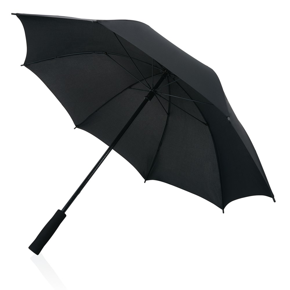 190T Pongee Polyester Sturm Regenschirm mit manuellem Öffnungsmechanismus. Inkl. Fiberglasschaft und -rahmen, Kunststofftips und -spitze. Windbeständiges System. Gerader EVA Griff.