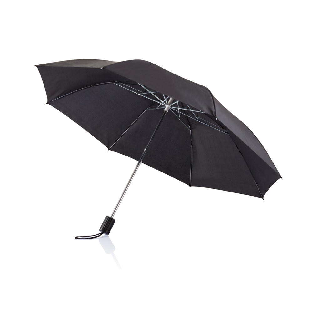 20" Taschenschirm mit manueller Öffnung aus 210T Polyester mit Metallschaft, -rahmen und -tips, sowie Kunststoffgriff und -spitze.
