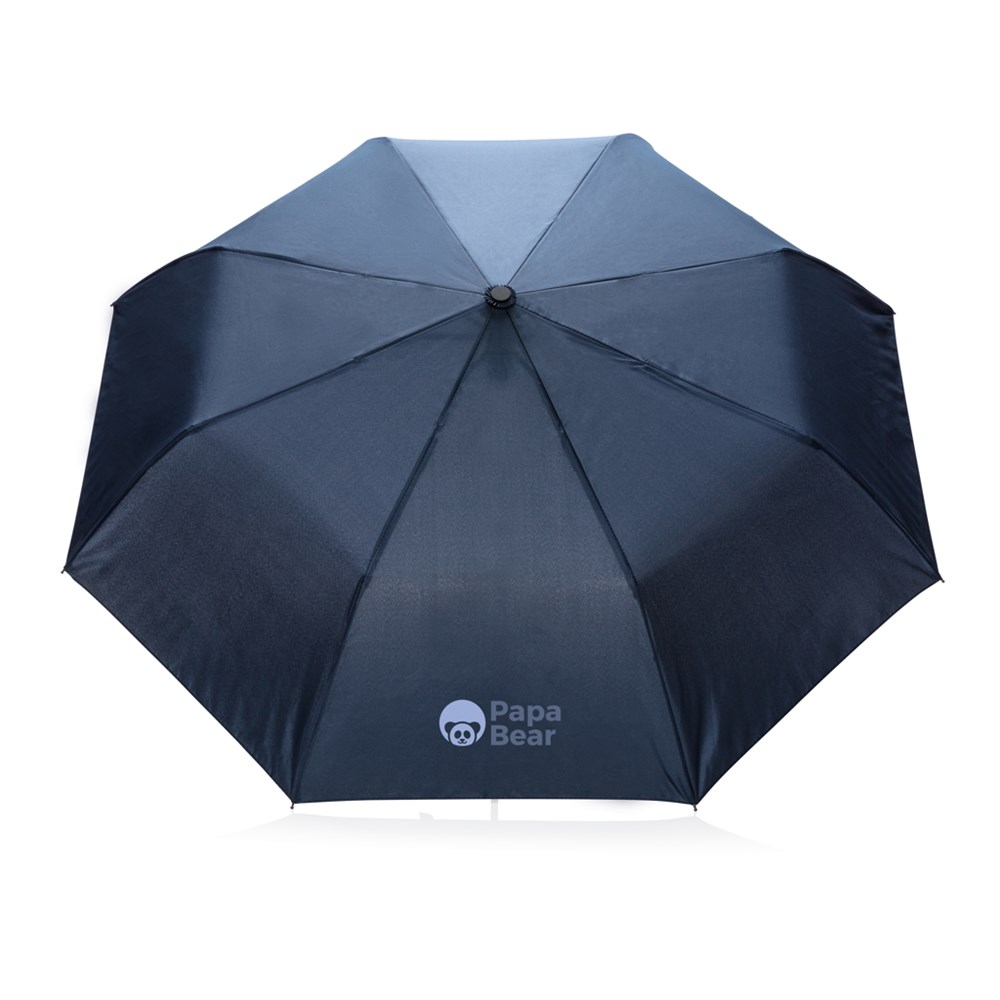 Dieser 21" faltbare Schirm mit Automatiköffnung aus 190T Pongee hat einen schwarzen Rahmen mit Fiberglass Gestänge. Der Griff hat die gleiche Farbe wie das Etui.