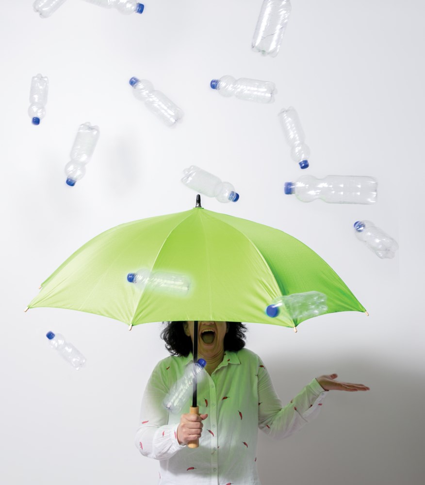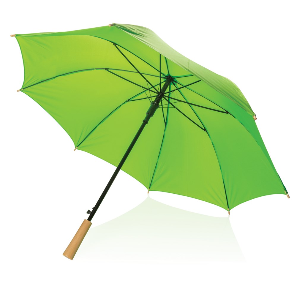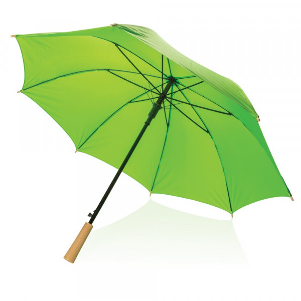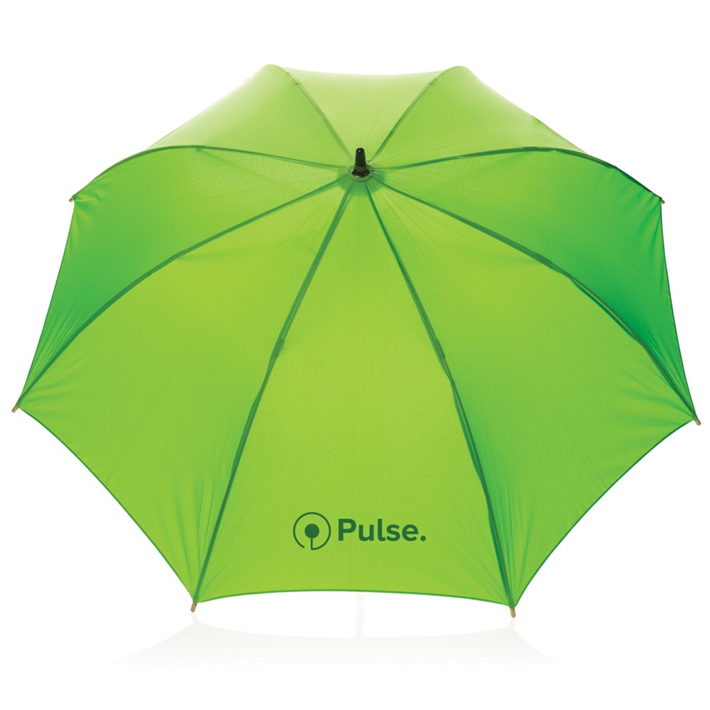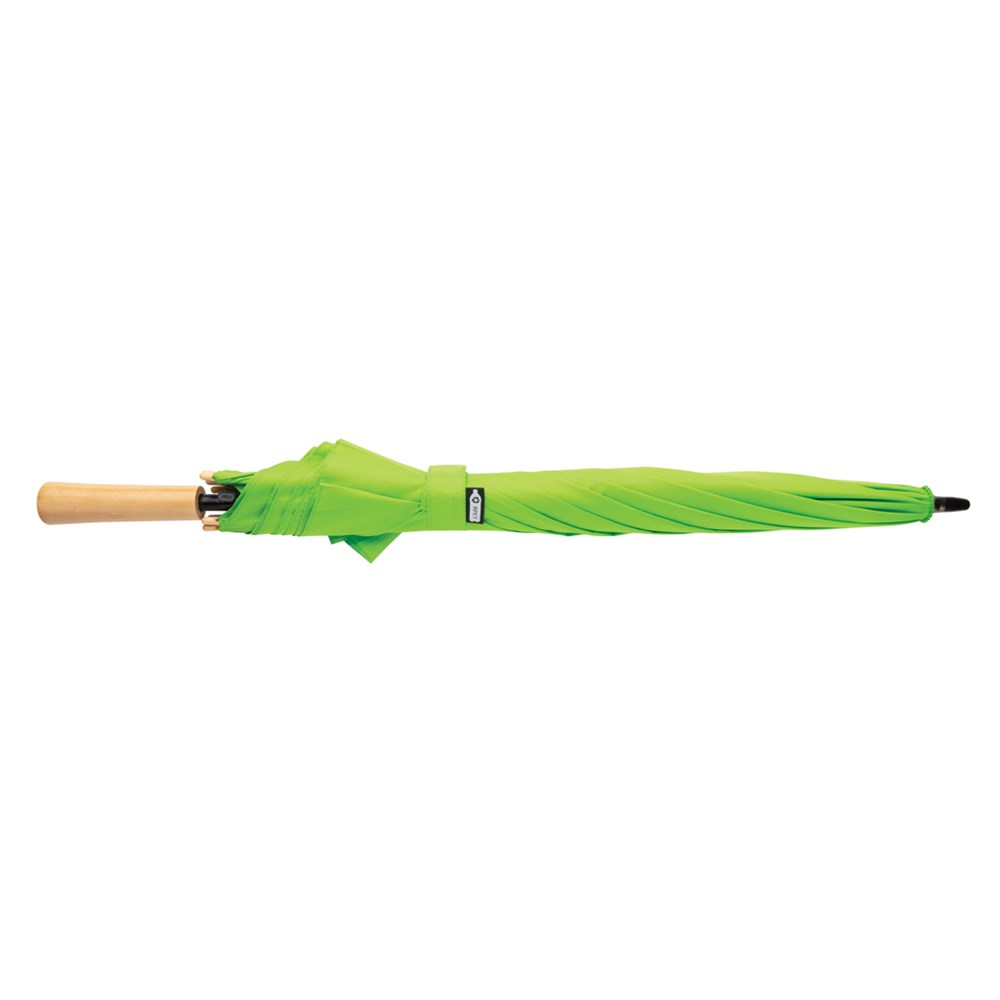 Ein Schirm für alle Fälle. Hergestellt aus 190T Pongee RPET Polyester mit Metallrahmen und Fiberglasspeichen bietet er dem Wind kraftvollen Wiederstand und sieht zudem auch noch wirklich schick aus.