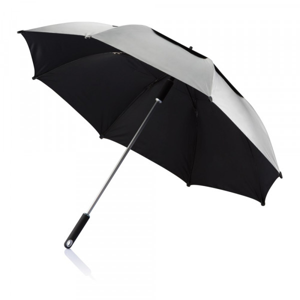 Der 27” Hurricane Regenschirm ist durch seine doppelten Panele der ideale Begleiter für stürmische Wetterbedingungen. Durch sein wasserundurchlässiges Material ist er im Handumdrehen trocken und durch seinen einzigartigen Öffnungsmechanismus kann er mit Leichtigkeit geöffnet und geschlossen werden. Geschütztes Design®