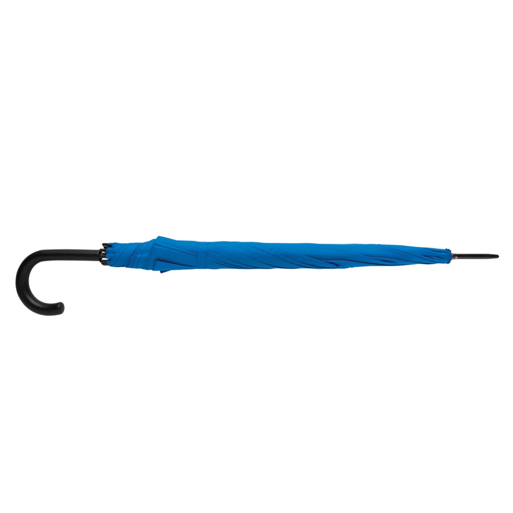 Schirm mit automatischer Öffnung aus 190T Pongee Polyester mit Metallschaft, Fiberglasrippen, Spitze aus PP und matt schwarzem Griff. Sturmsicher.