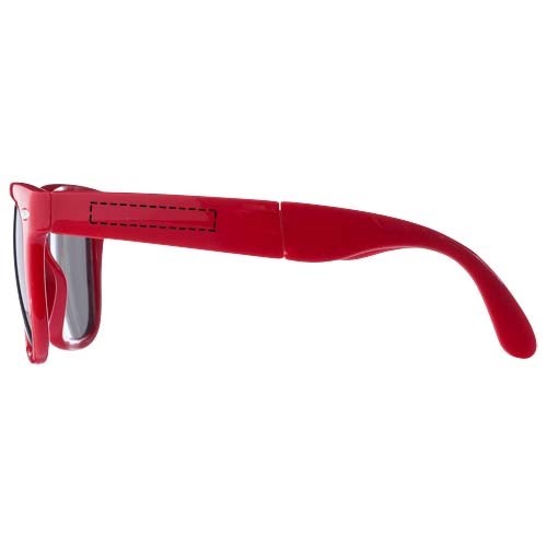 Sonnenbrille im Retro Design mit zusammenklappbaren Bügeln und Gestell. Gläser der Filterkategorie 3. Erfüllt EN ISO 12312-1 und UV 400.