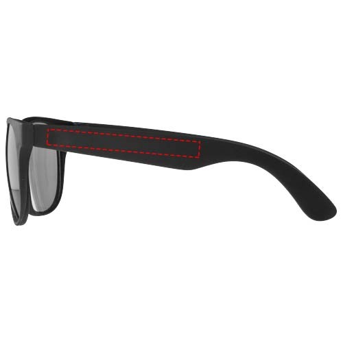 Sonnenbrille im Retro Design mit schwarzen Gläsern der Kategorie 3 und farbigen Bügeln. EN ISO... mehr