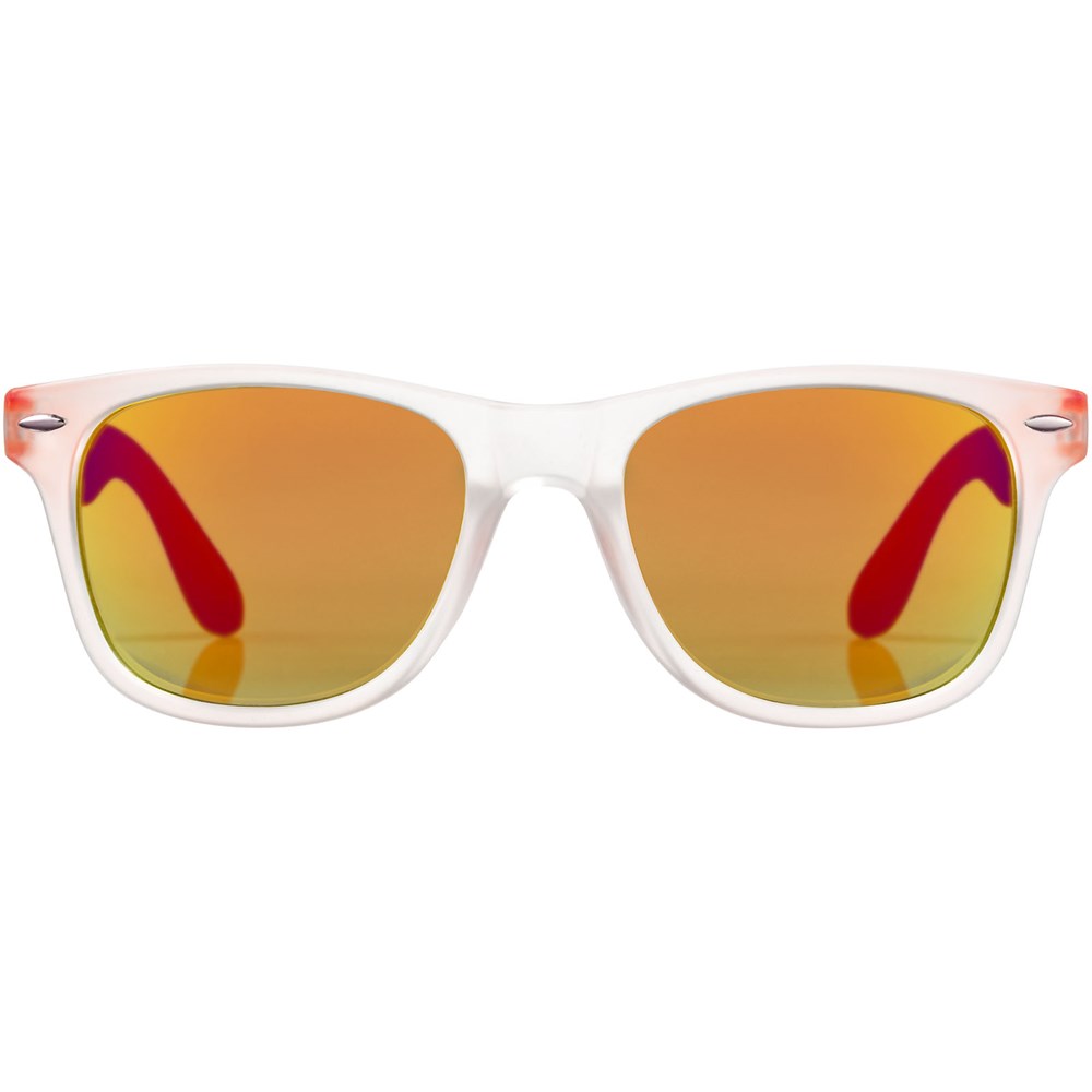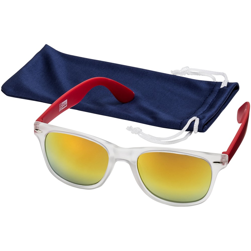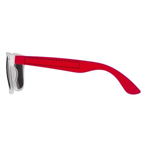 Trendige Sonnenbrille im exklusiven Design mit Gläsern der Kategorie 3 und UV400 Schutz. Polycarbonatgestell und Acrylgläser. Mit Mikrofaserbeutel, der auch als Reinigungstuch verwendet werden kann. Verpackt in einem exklusiven Geschenkbeutel. EN ISO 12312-1 konform.