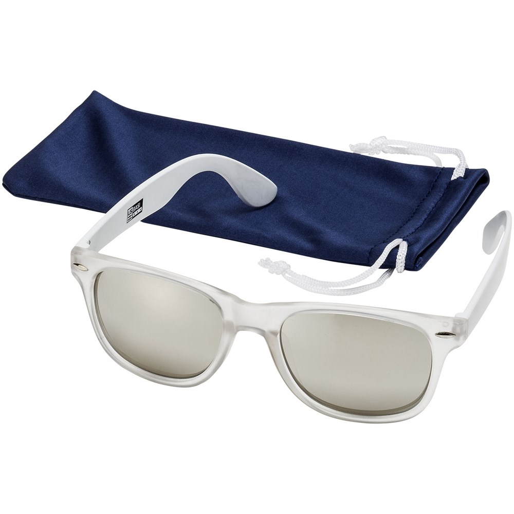 Trendige Sonnenbrille im exklusiven Design mit Gläsern der Kategorie 3 und UV400 Schutz. Polycarbonatgestell und Acrylgläser. Mit Mikrofaserbeutel, der auch als Reinigungstuch verwendet werden kann. Verpackt in einem exklusiven Geschenkbeutel. EN ISO 12312-1 konform.