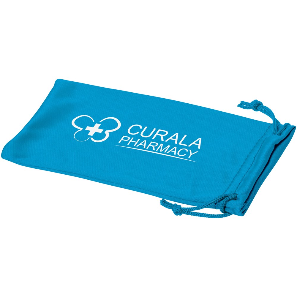 Mikrofaserbeutel mit Kordelzugverschluss zum sicheren Aufbewahren, Tragen und Reinigen Ihrer Sonnenbrille. Die große Farbauswahl und die große Dekorationsfläche machen es zu einem perfekten Geschenk zur Ergänzung Ihrer Sonnenbrille.